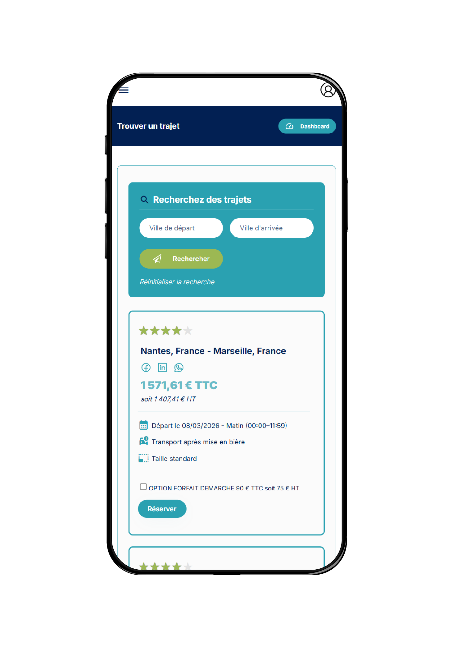 Les annonces de trajets correspondent à des trajets retours à vide prévus par des opérateurs utilisateurs du service. Il est possible de les réserver intégralement, ou de transmettre une offre pour réserver une portion du trajet. Les demandes de transport sont publiées par des Pompes Funèbres à la recherche d’un sous-traitant pour effectuer un transport de défaut, et en attente d’offres pour leur besoin.